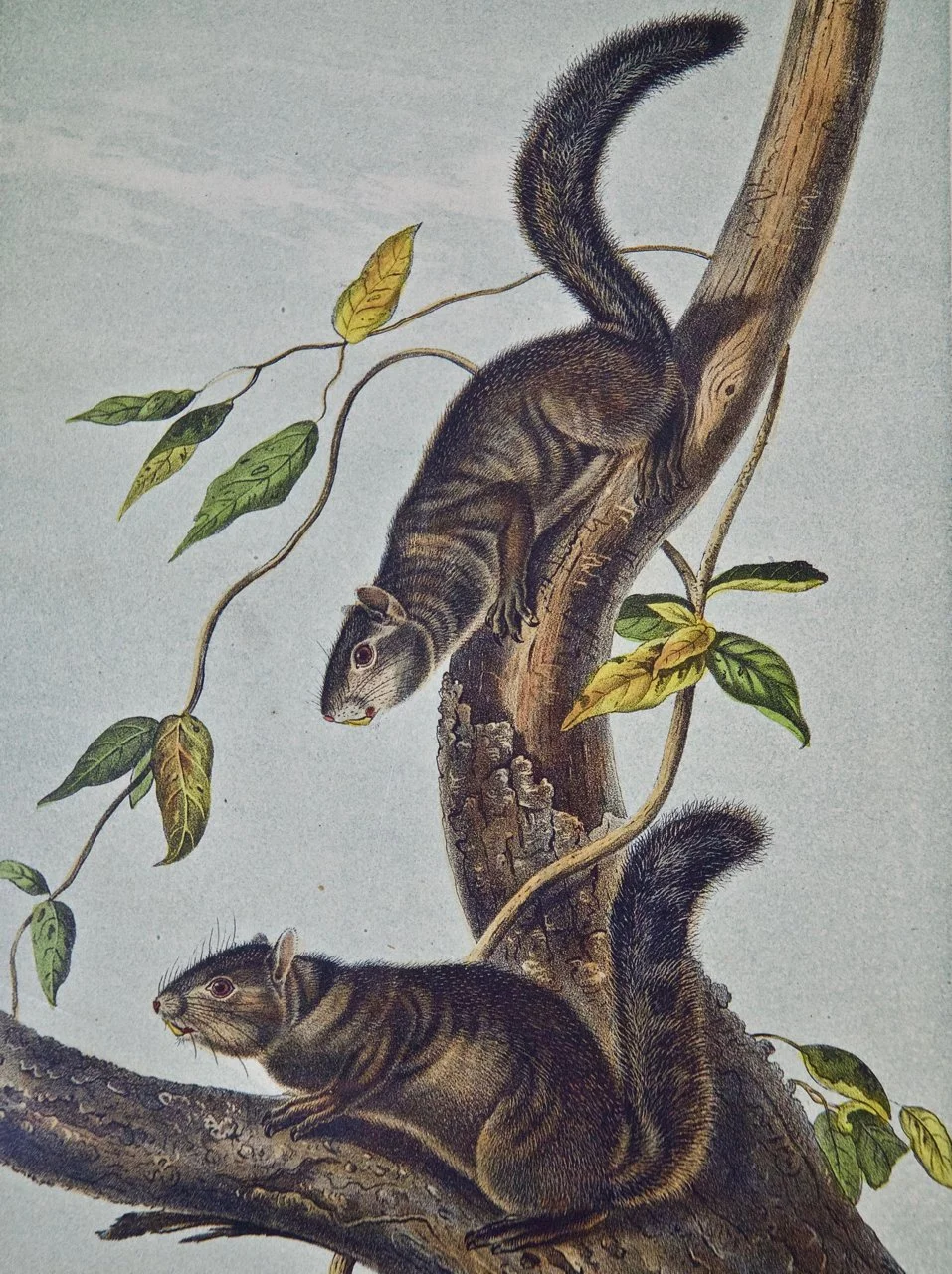 Between 1845 and 1848, Audubon and his sons John Woodhouse Audubon and Victor Gifford Audubon produced a set of elephant folio sized lithographs that were primarily engraved and hand colored by J. T. Bowen in Philadelphia. The publication, which included text descriptions of the animals was published 3 years before Audubon died. As with the birds, this was followed by a three-volume set of 155 octavo-sized plates entitled “The Quadrupeds of North America” completed and published by Audubon’s sons, John, Jr. and Victor.